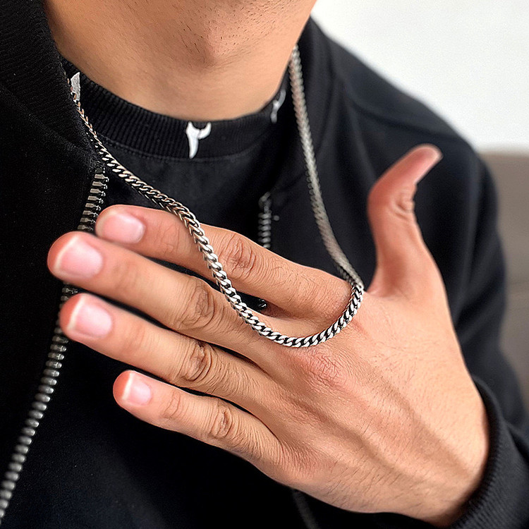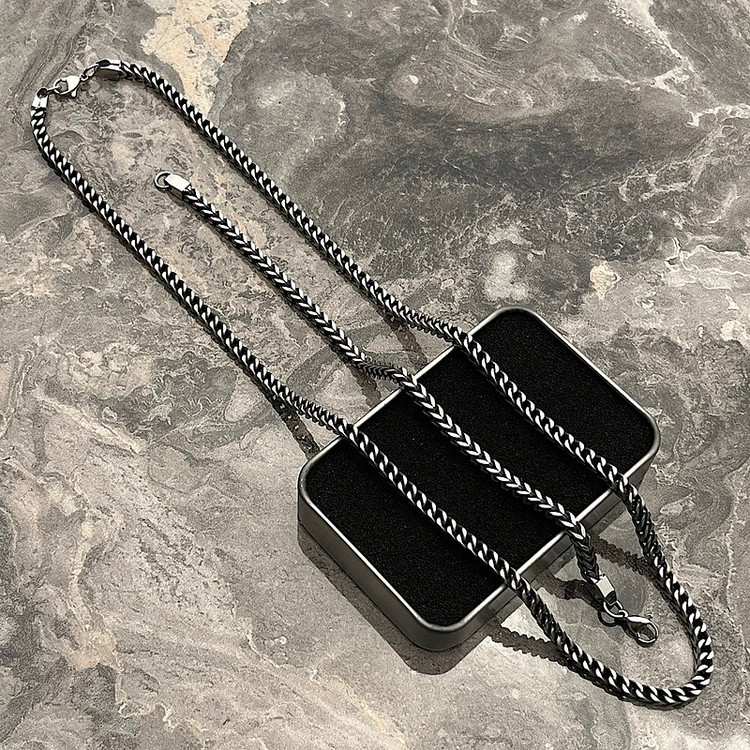 ست گردنبند و دستبند سیاه قلم ۴ وجهی