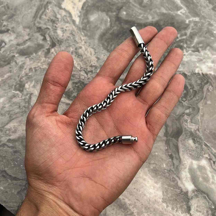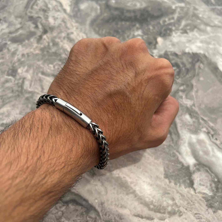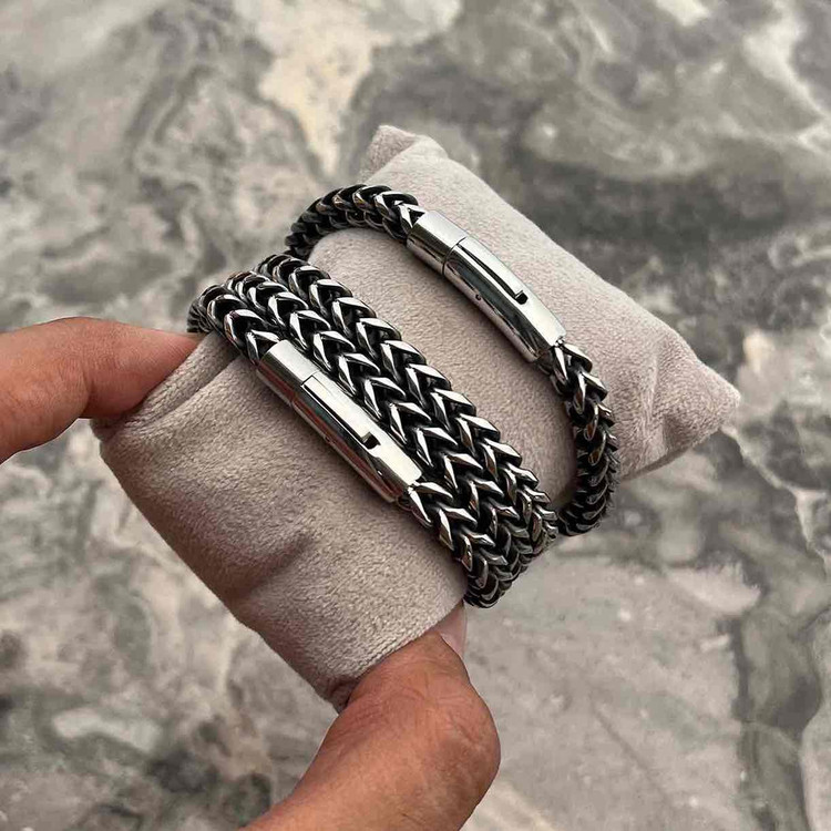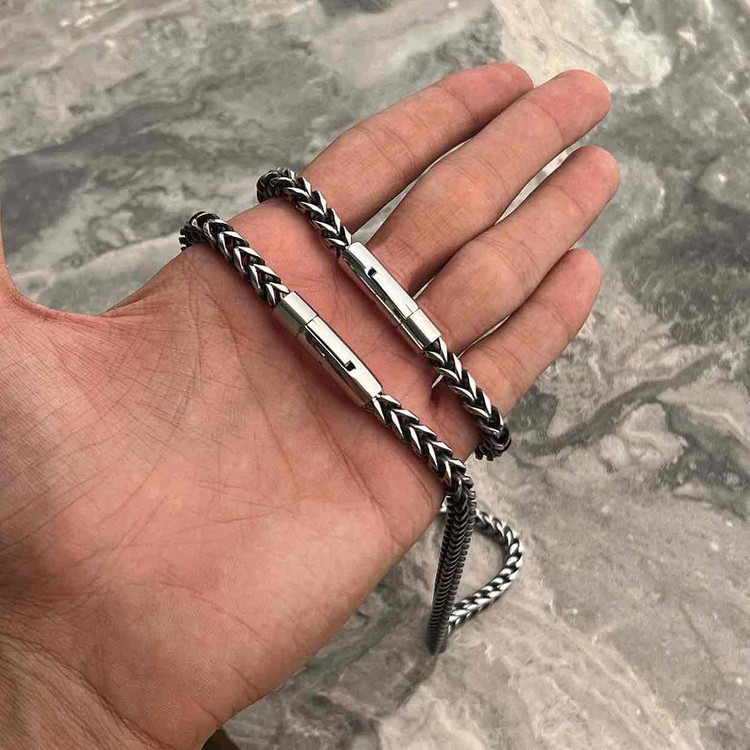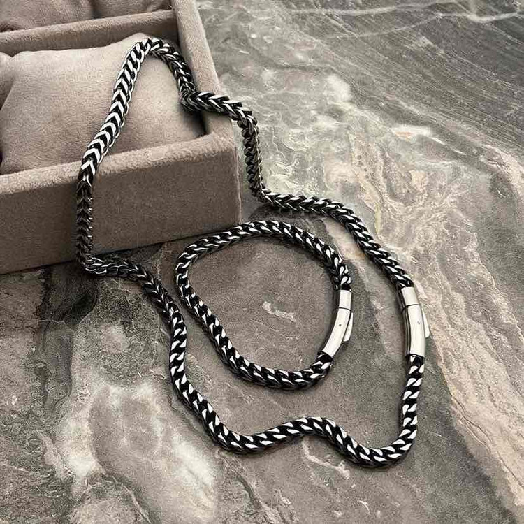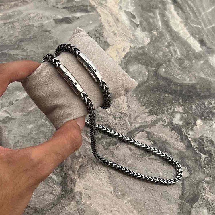 ست گردنبند و دستبند سیاه قلم ۴ وجهی قفل اصلی