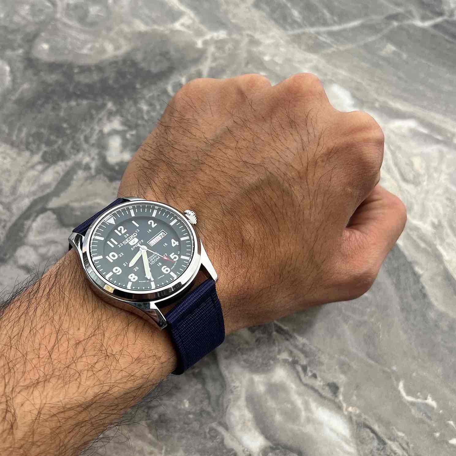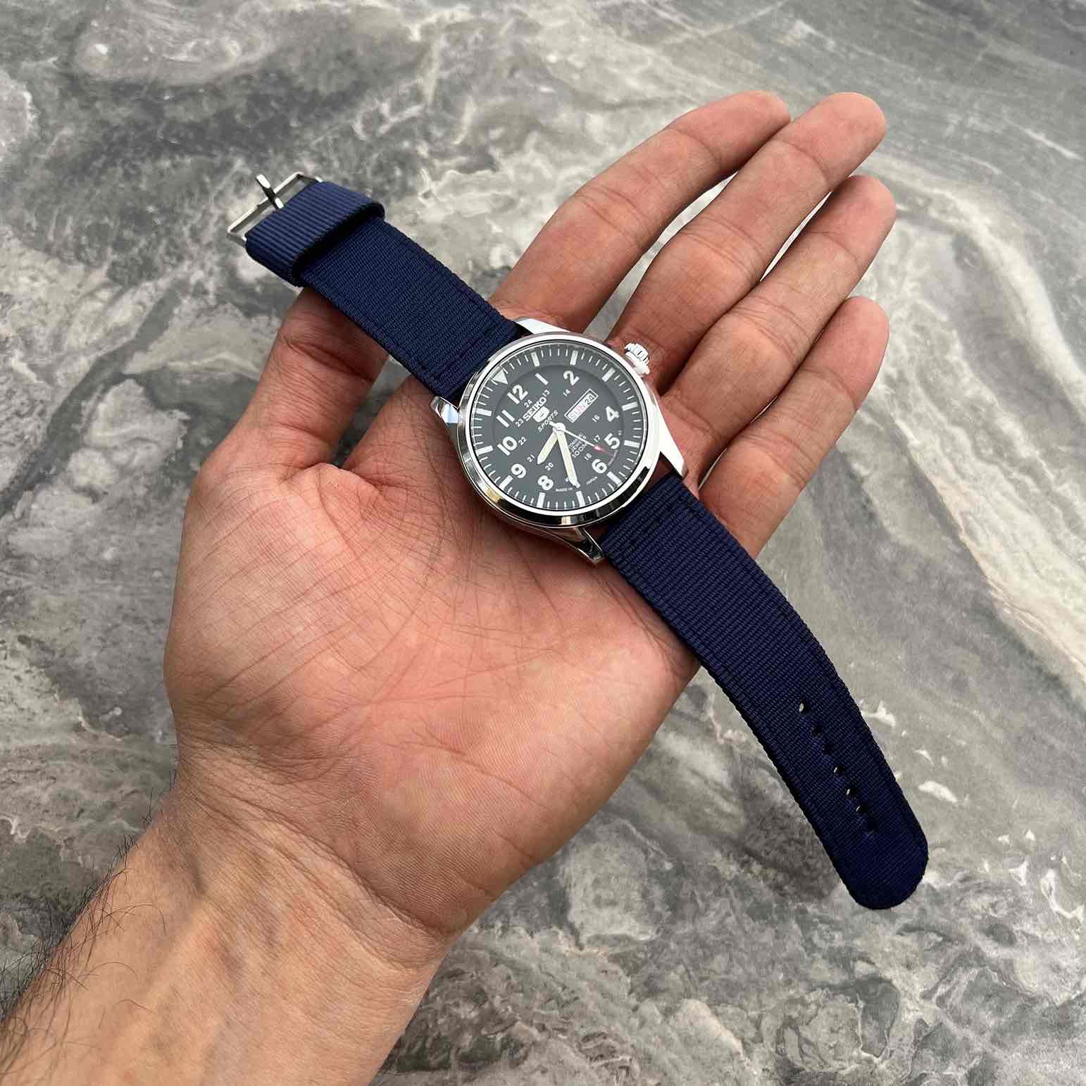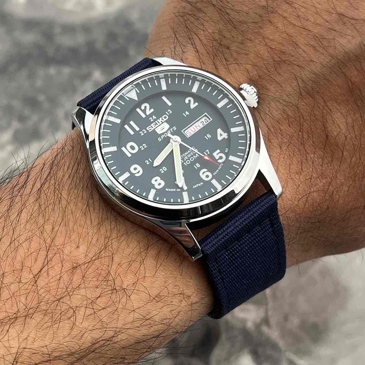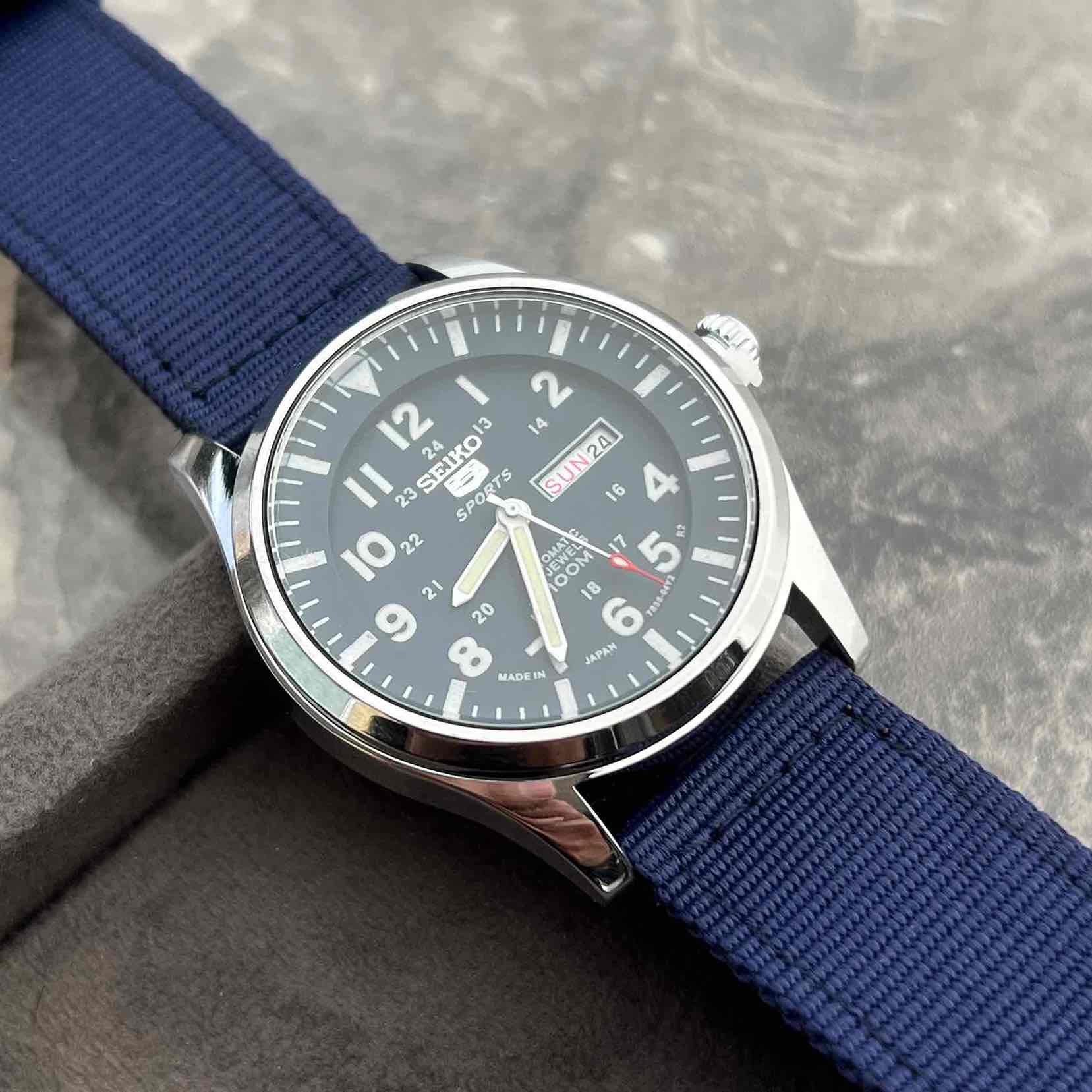 ساعت خلبانی SEIKO5 سیکو ۵ دوست داشتنی رنگ بشدت خاص و پر طرفدار بند برزنتی و کامل مقاوم در برابر آب و خوردگی بالاترین درجه کیفی موجود AAA+ موتور کوارتز باطری ژاپن🇯🇵 دارای نمایشگر تاریخ و روز عقرب و ایندکس شب نما شیشه سافایر (ضدخش) رنگ ثابت و ضد حساسیت کیفیت مستر رنگ صفحه و بند آبی «با کار های موتور چین و پرس مقایسه نکنید»